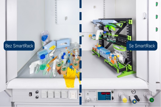 SmartRack® je modulárny systém pre organizáciu laboratórneho pracoviska, vyvinutý spoločnosťou Better Basics Laborbedarf. Premieňa pracovné miesto z historicky vzniknutého mixu pomôcok na prehľadne usporiadané a ergonomické pracovisko.